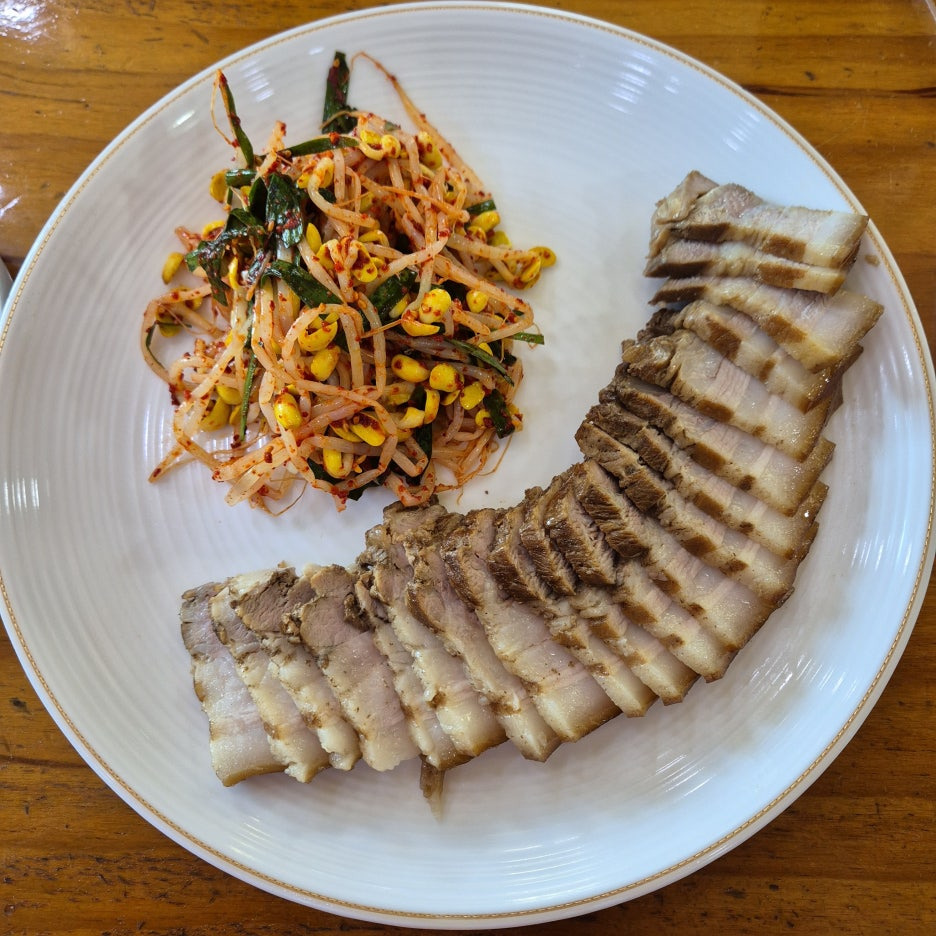그리고 보쌈이 먼저나오는데 4인분 양의 보쌈이에요. 보쌈과 콩나물 무침~ 콩나물 무침은 새콤하니 정말 맛있습니다.