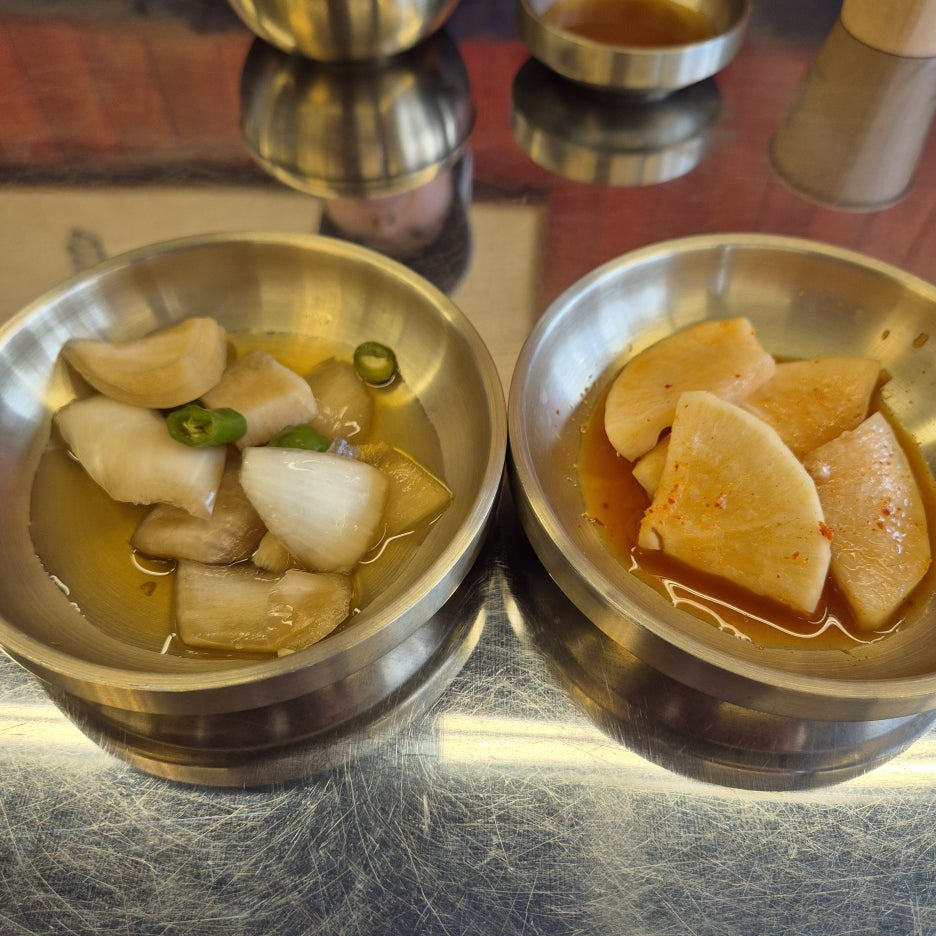 반찬으로는 양파장아찌와 깍두기가 나왔는데 깍두기가 정말 엄청 신?쉰? 깍두기더라구요.