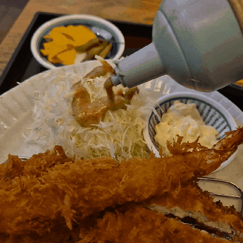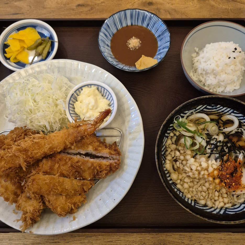 돈카츠 2덩어리에 새우튀김 하나!!